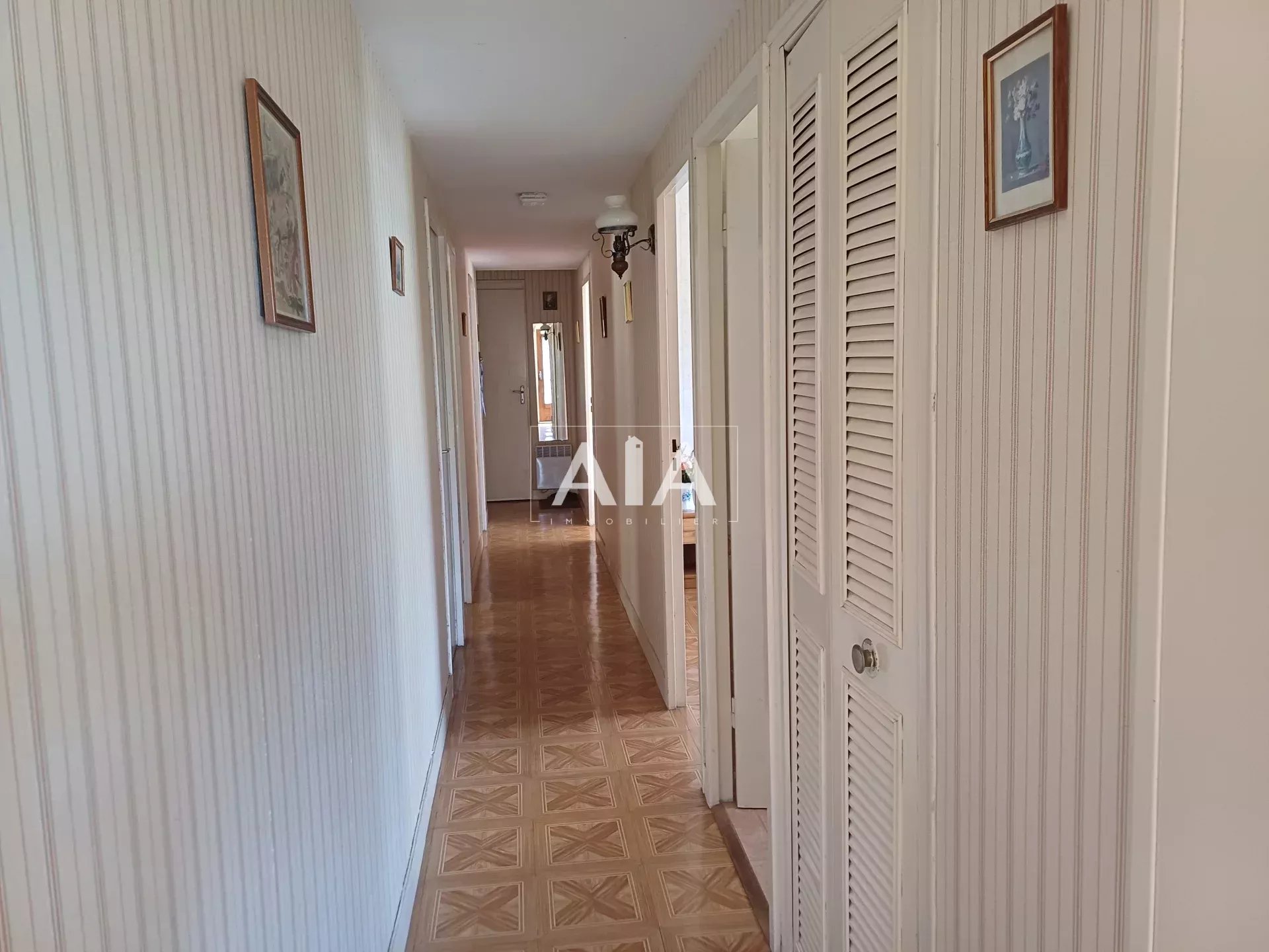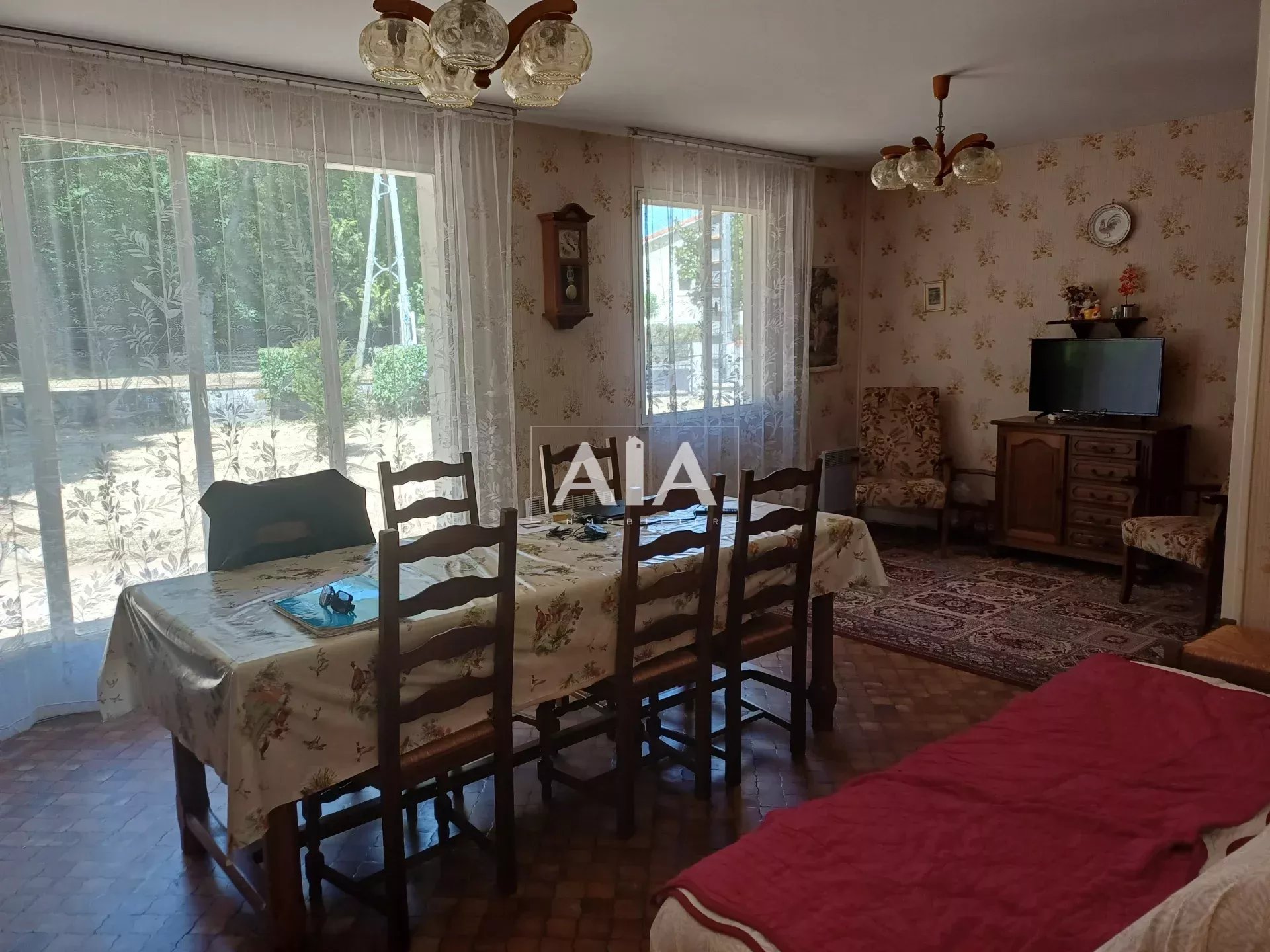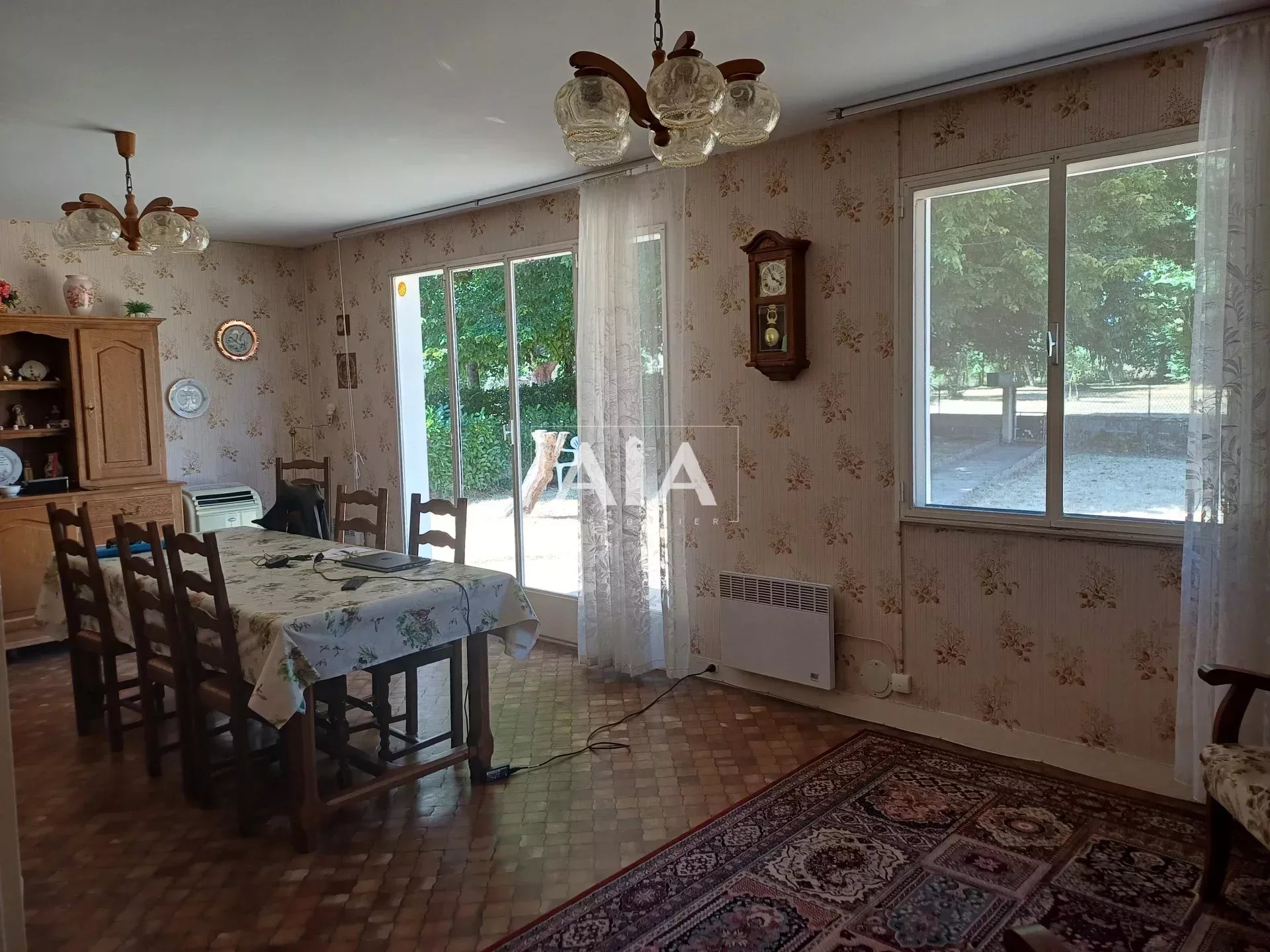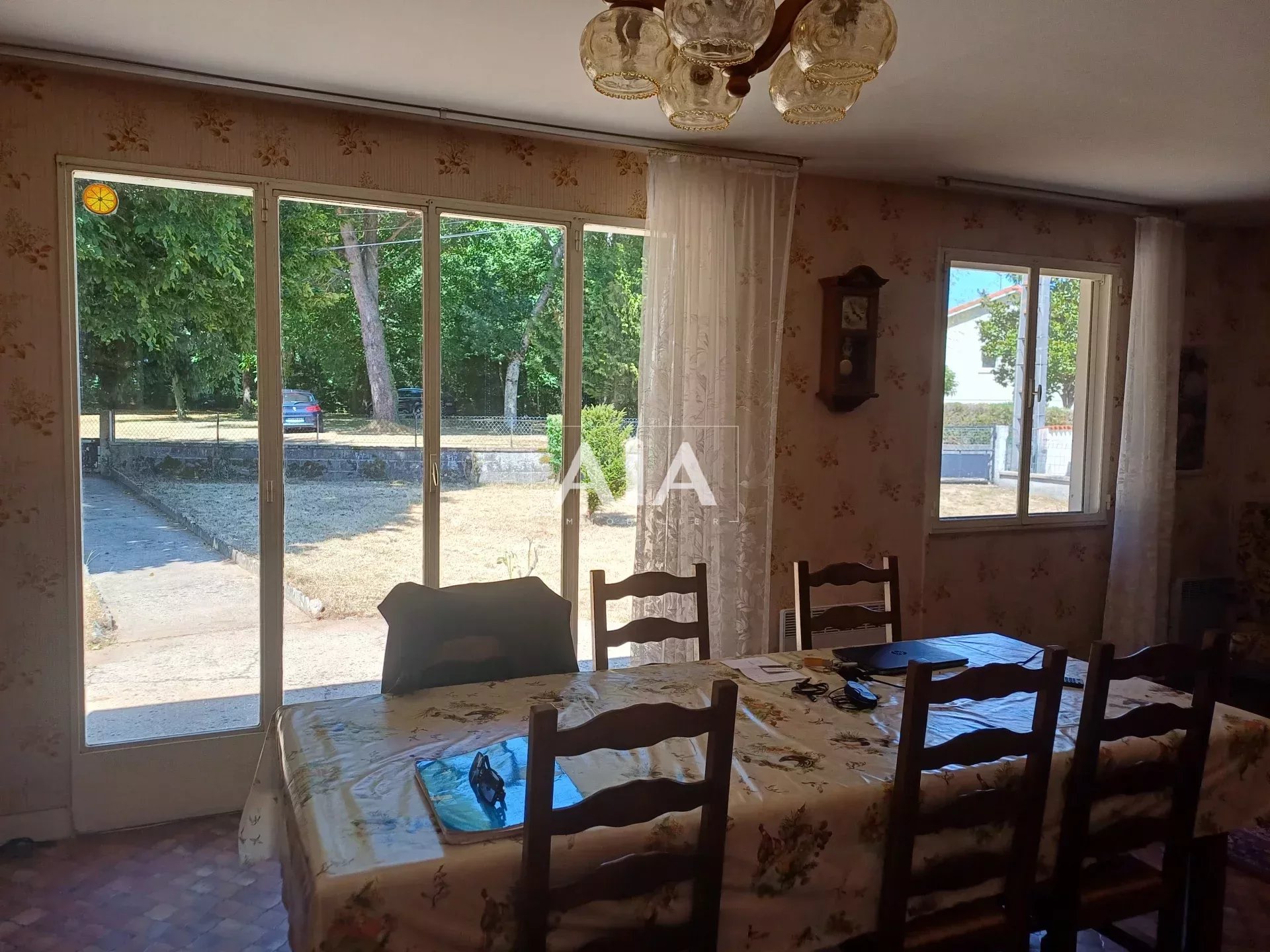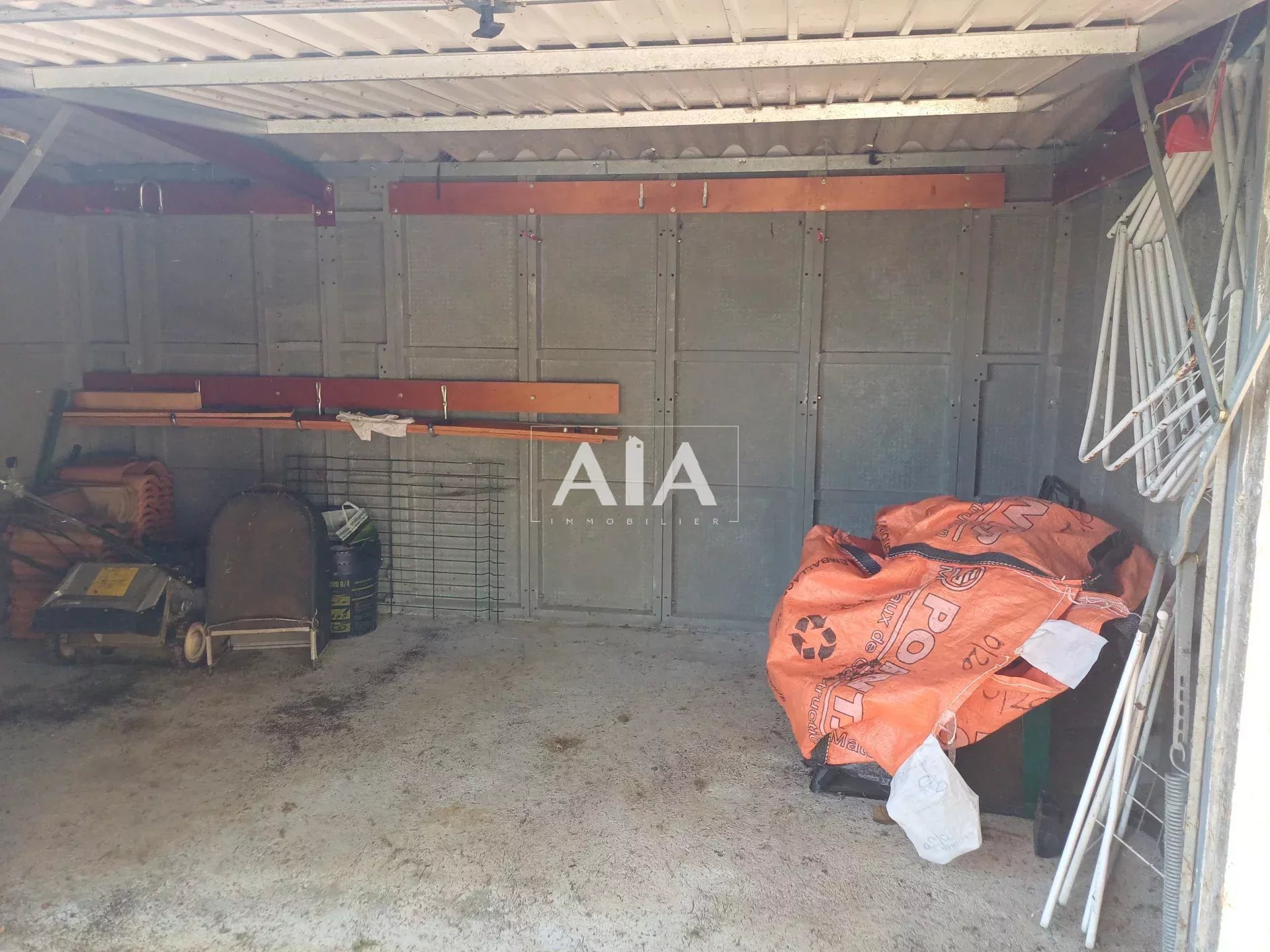Phoenix pavilion in very good condition, in need of refurbishment. It comprises: entrance hall, simple kitchen, living room, shower room, separate toilet, 4 bedrooms, and an adjoining garage. A solid garden shed. All set on a 1,627 m² enclosed plot with trees.